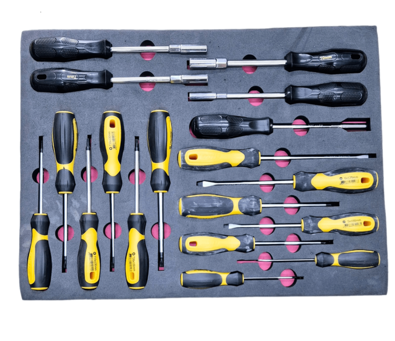 Ergonomi: Tornavidaların sapları, uzun süreli ve rahat kullanım için ergonomik tasarıma sahiptir.