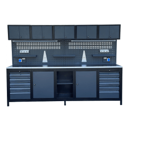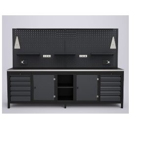 • Özellikleri: Ağır çelik konstrüksiyon, sağlam çalışma yüzeyi (ahşap, metal veya özel kaplama), çekmeceli ve dolaplı depolama alanları, ayarlanabilir ayaklar.