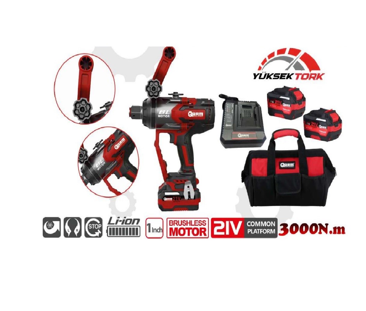 | Maksimum Tork Gücü | 3000 Nm (Newton metre) Sökme Torku | 3000 Nm Somun Sökme, Yüksek Torklu Bijon Tabancası |