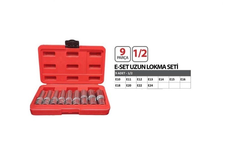| Uzun E Lokma | 1/2 inç | E10, E11, E12, E14, E16, E18, E20, E22, E24 |