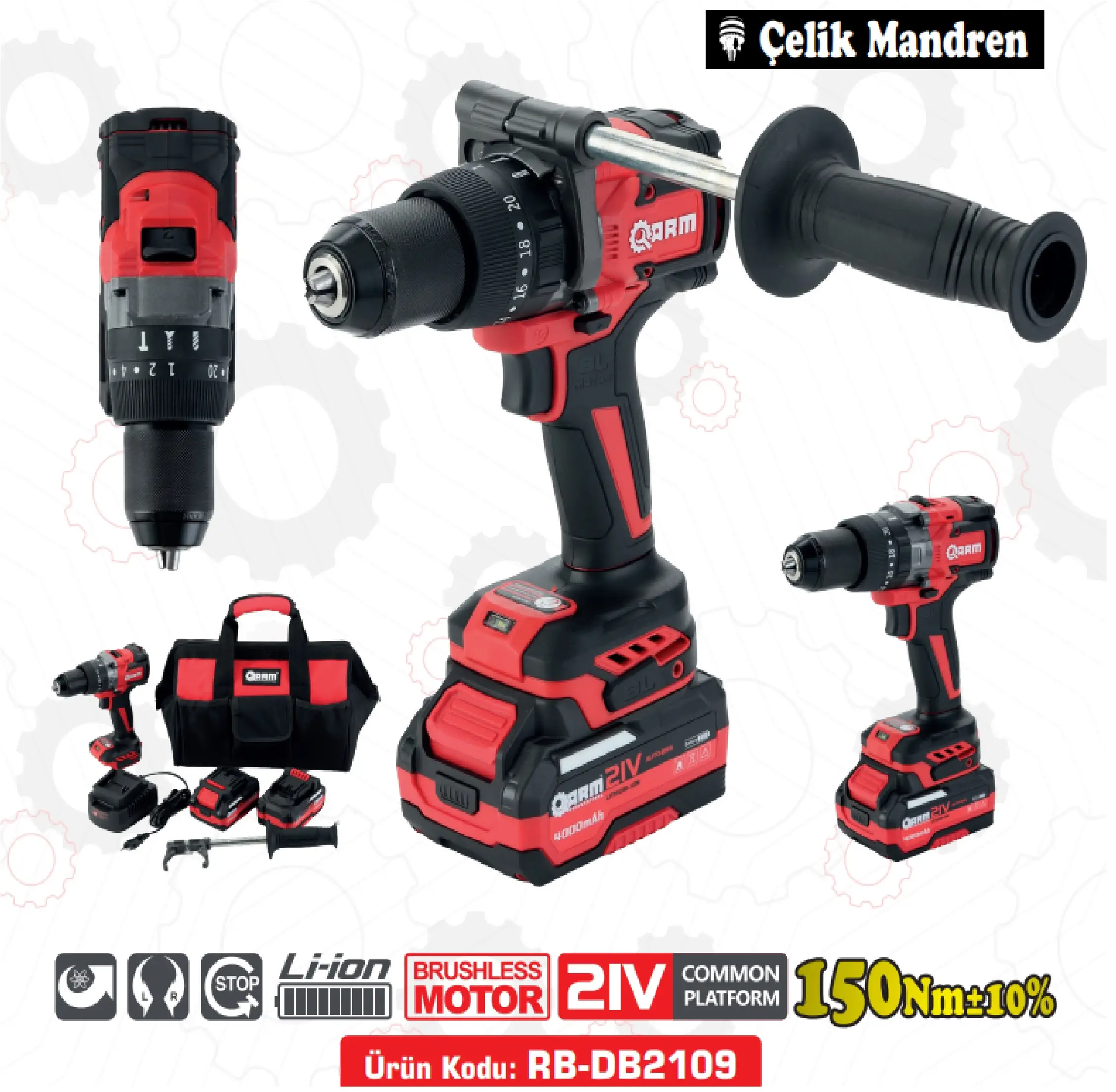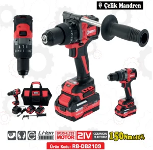 ARM RB-DB2109, hem ev hem de profesyonel kullanım için ideal, güçlü ve çok yönlü bir şarjlı matkaptır. Darbeli özelliği sayesinde beton, tuğla gibi sert yüzeylerde delme işlemlerini kolaylaştırırken, ahşap ve metal gibi daha yumuşak malzemelerde de rahatlıkla kullanılabilir.