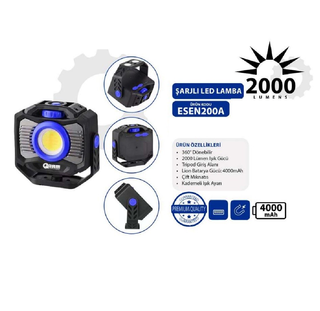 ARM Şarjlı Led Lamba Fener Işıldak 2000 Lümen