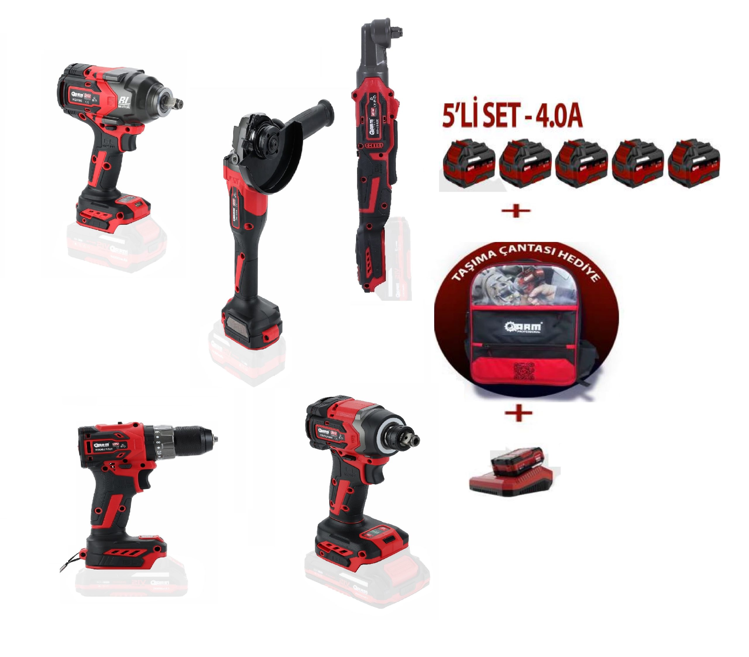 ARM Şarjlı Taşlama Somun Sökme Cırcır 5’Li Set