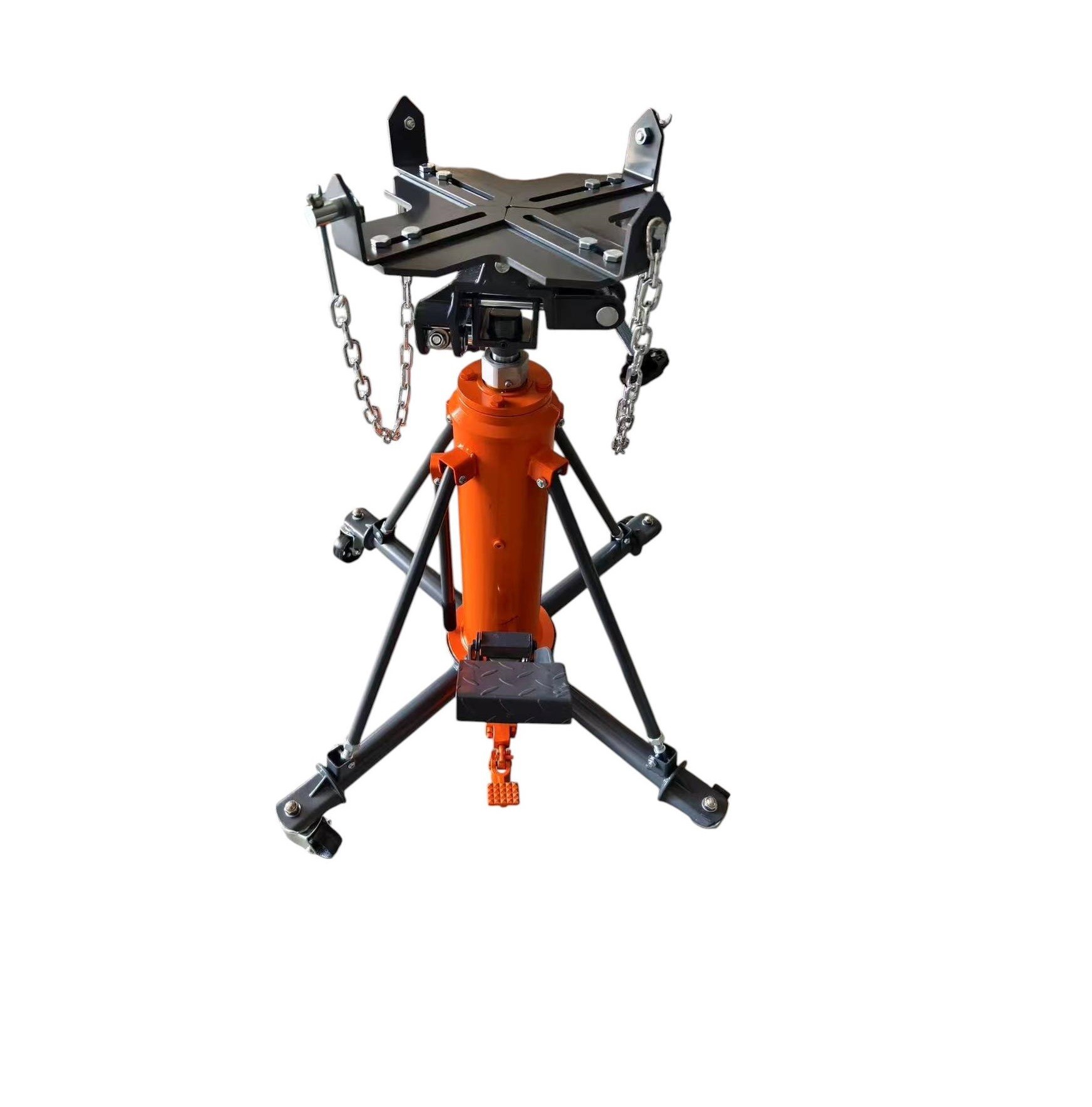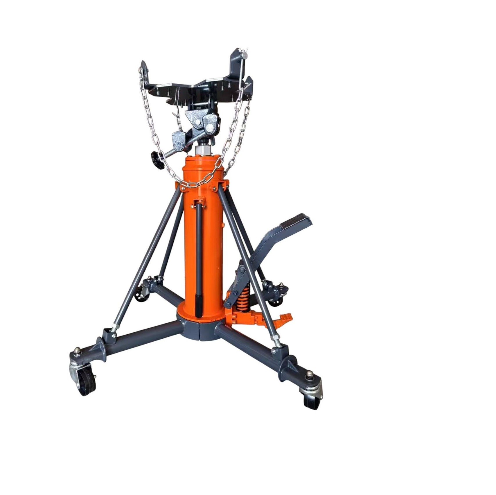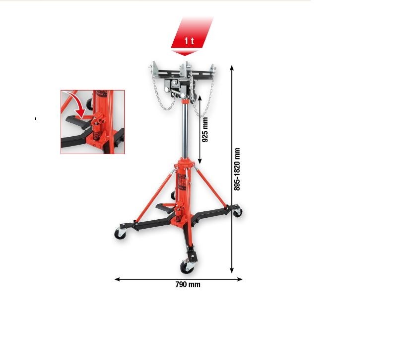 - Hidrolik Kaldırma Sistemi: Ayak pedalı veya manuel kol ile çalıştırılan hidrolik pompa sayesinde şanzımanı kolayca yukarı ve aşağı hareket ettirir. Bu, hassas konumlandırma imkanı sunar.
