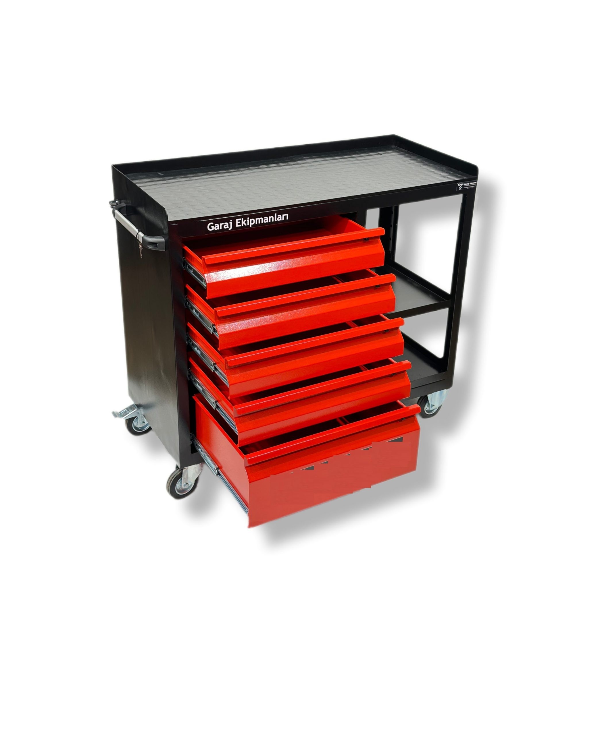 - Çekmeceler: Adından da anlaşılacağı gibi, 5 adet çekmeceye sahiptir. Bu çekmeceler genellikle farklı derinliklerde olabilir, böylece hem küçük el aletlerinizi hem de daha büyük ekipmanlarınızı düzenleyebilirsiniz. Çekmecelerde genellikle teleskopik raylar bulunur, bu da tam açılma ve pürüzsüz çalışma sağlar. Ayrıca, çekmecelerin kilitlenebilir olması, aletlerinizin güvenliği için önemlidir.