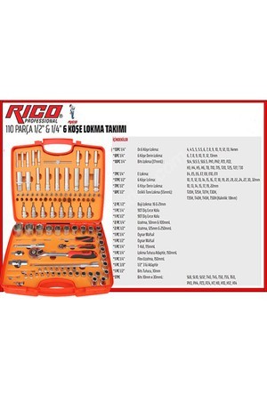 Rico 1/2-1/4 110 Parça 6 Köşe Lokma Takımı