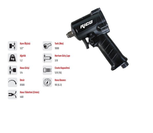 Rico markasının 1/2” havalı serisinde öne çıkan modeller: