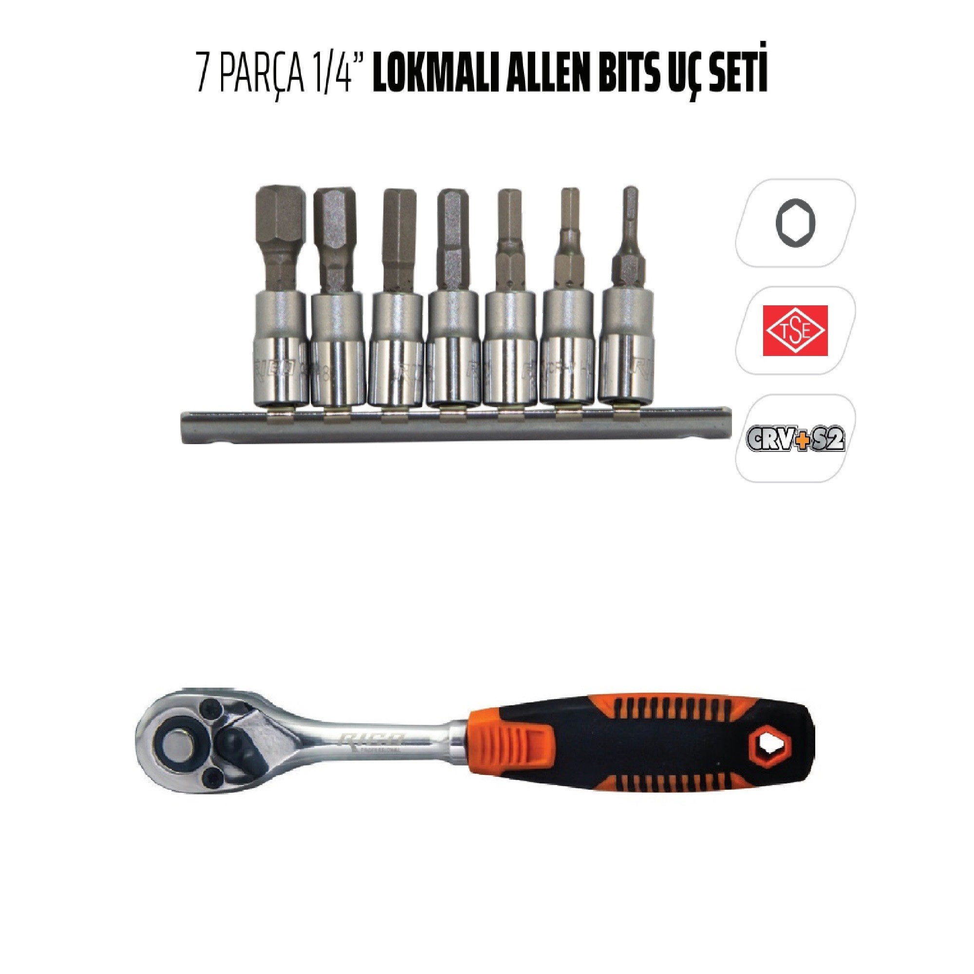 - 1/4″ Cırcır Kolu: Kompakt ve ergonomik tasarımıyla kolay kullanım sağlar.