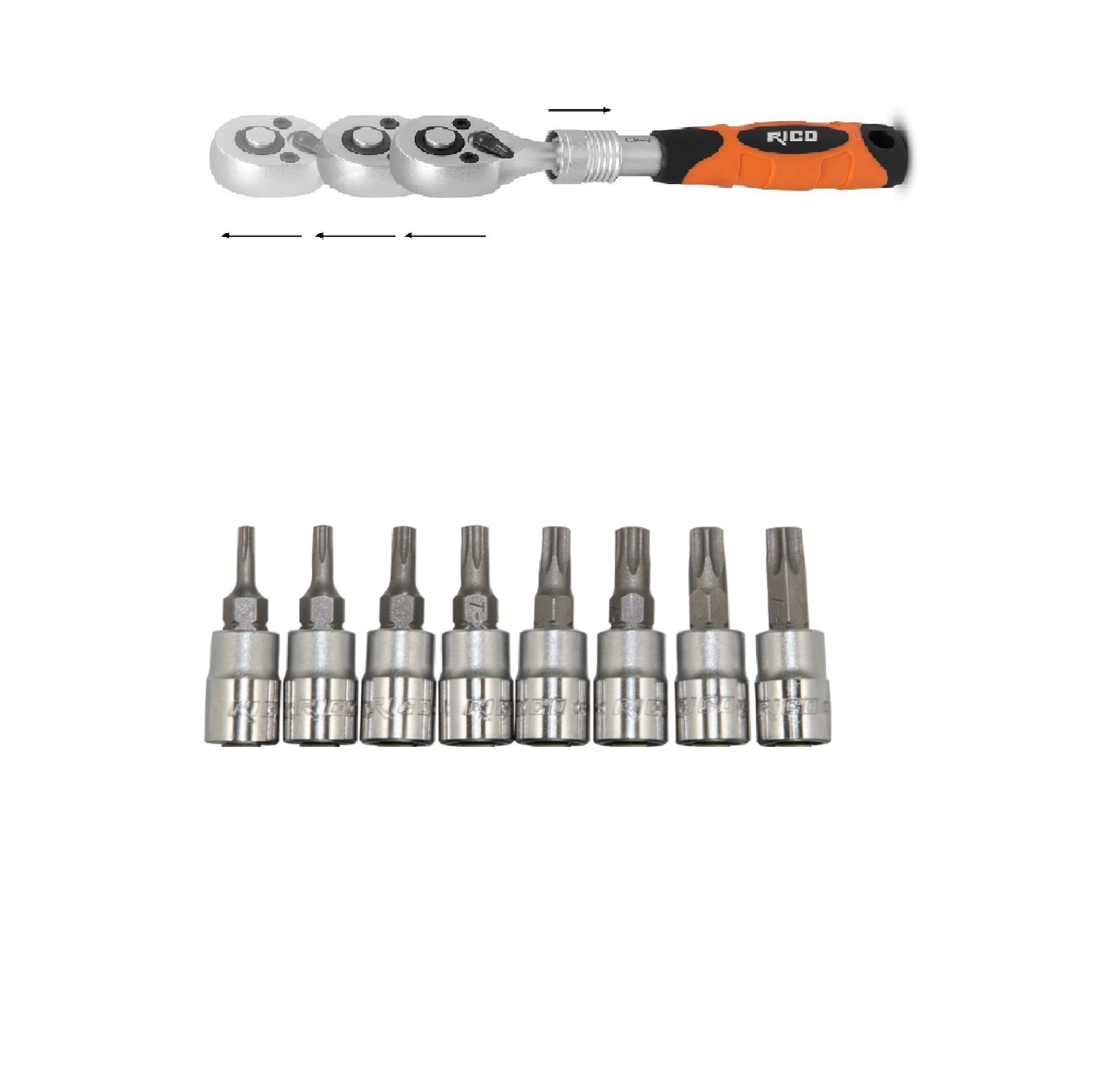 Rico 1/4 Delikli Torx Lokma Seti 1/4 Uzatmalı Cırcır