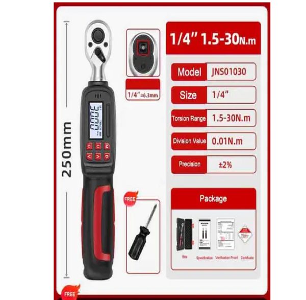 Rico 007-RC1630 model numaralı 1/4″ dijital tork kolu anahtarı, hassas tork ayarlama gerektiren uygulamalar için özel olarak tasarlanmış, yüksek teknolojili bir el aletidir. Özellikle elektronik cihazlar, bisikletler ve hassas makine parçalarının montajında kullanılır.