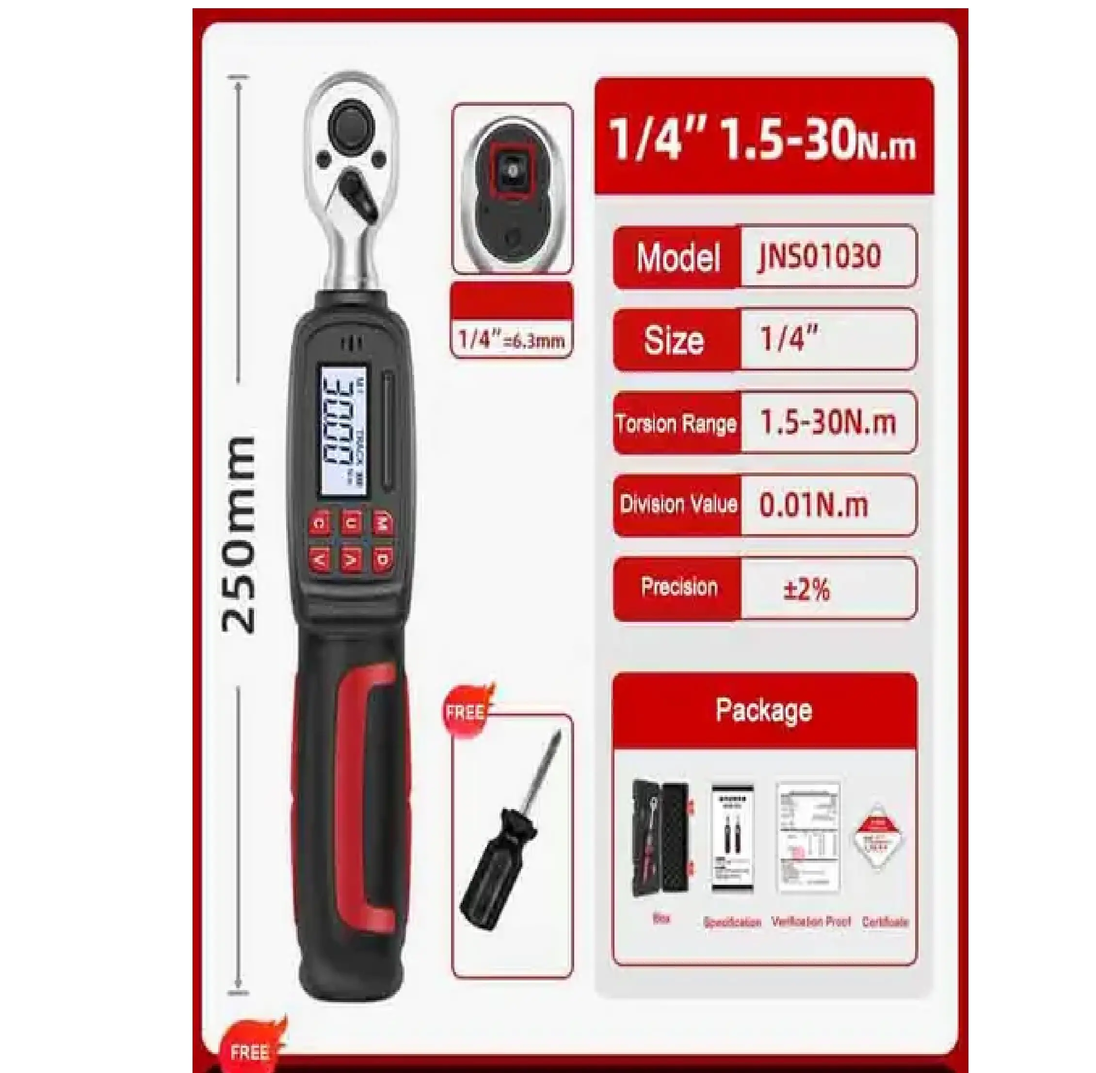 Rico 1/4 Dijital Tork Kolu Anahtarı 1,5 30Nm