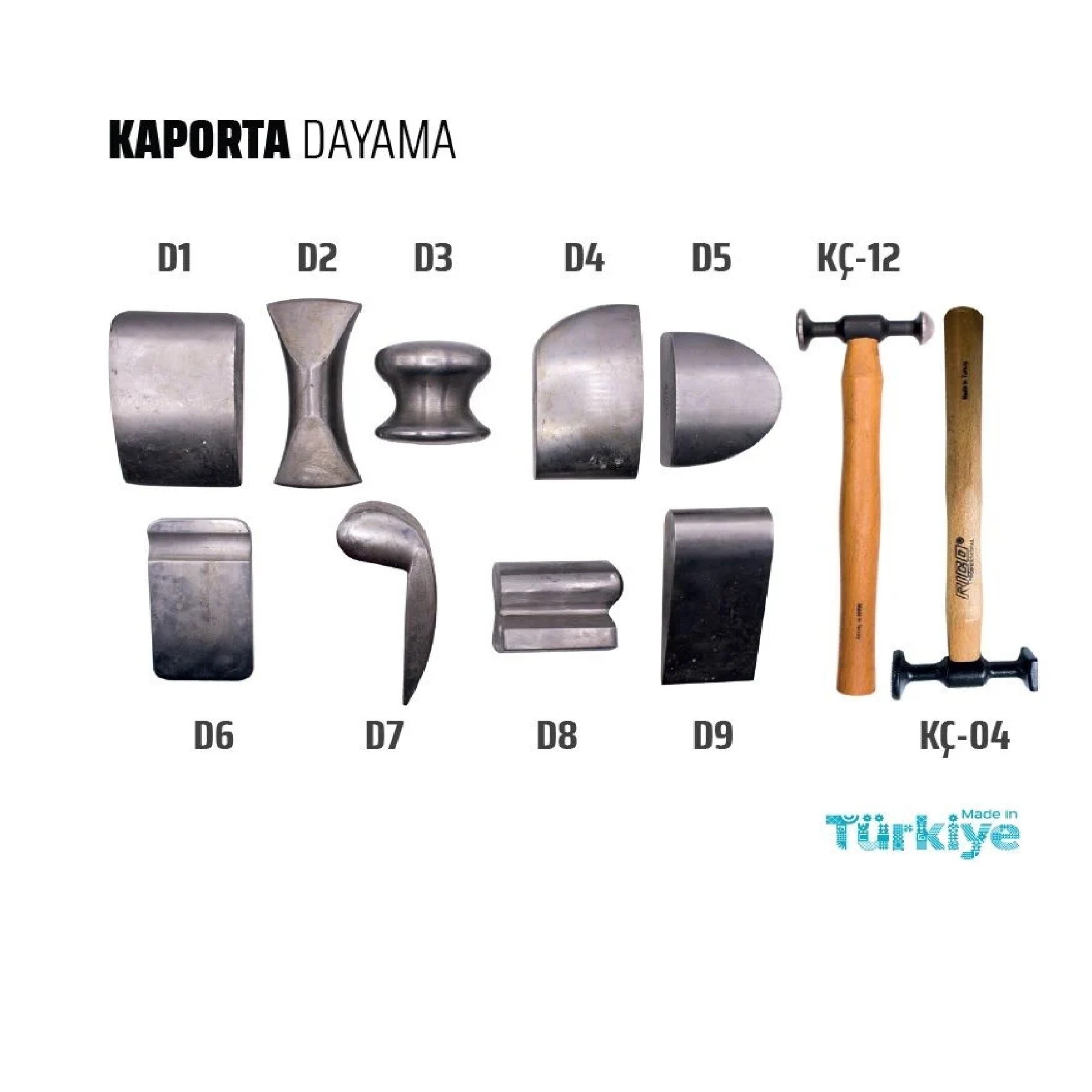 Genellikle bir kaporta dayama seti şu parçaları içerir: