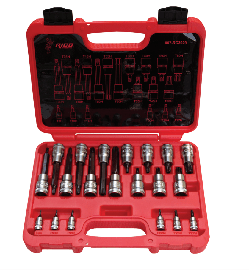 🔧 Rico 20 Parça 1/4-1/2 Lokmalı Delikli Torx Lokma Takımı Seti 007-RC3029