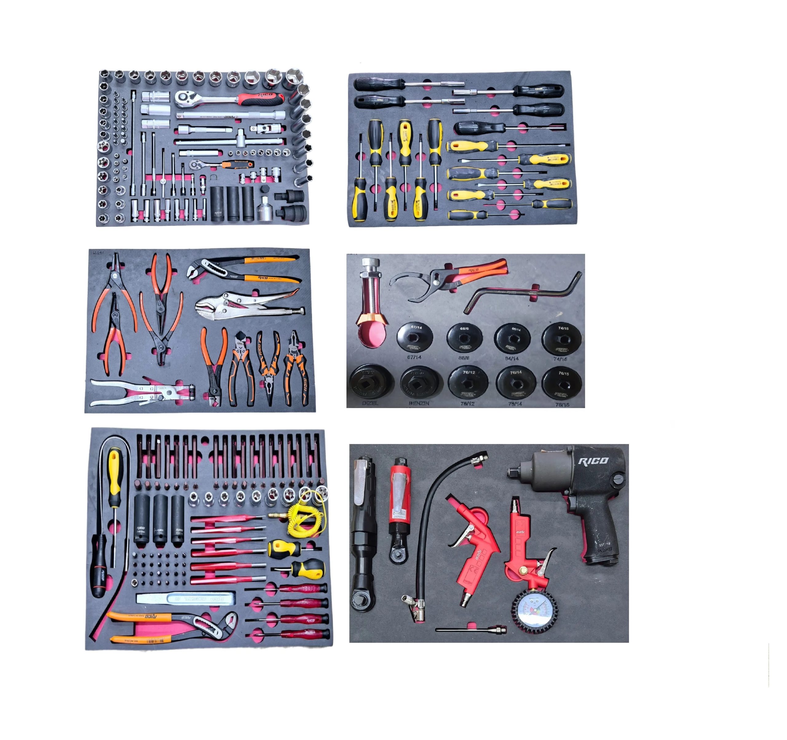 Bir Rico dolu takım arabası içerisindeki tornavida setinin içeriği, takım arabasının modeline ve büyüklüğüne göre değişiklik gösterebilir. Genellikle aşağıdaki gibi bir içerik bulunur: