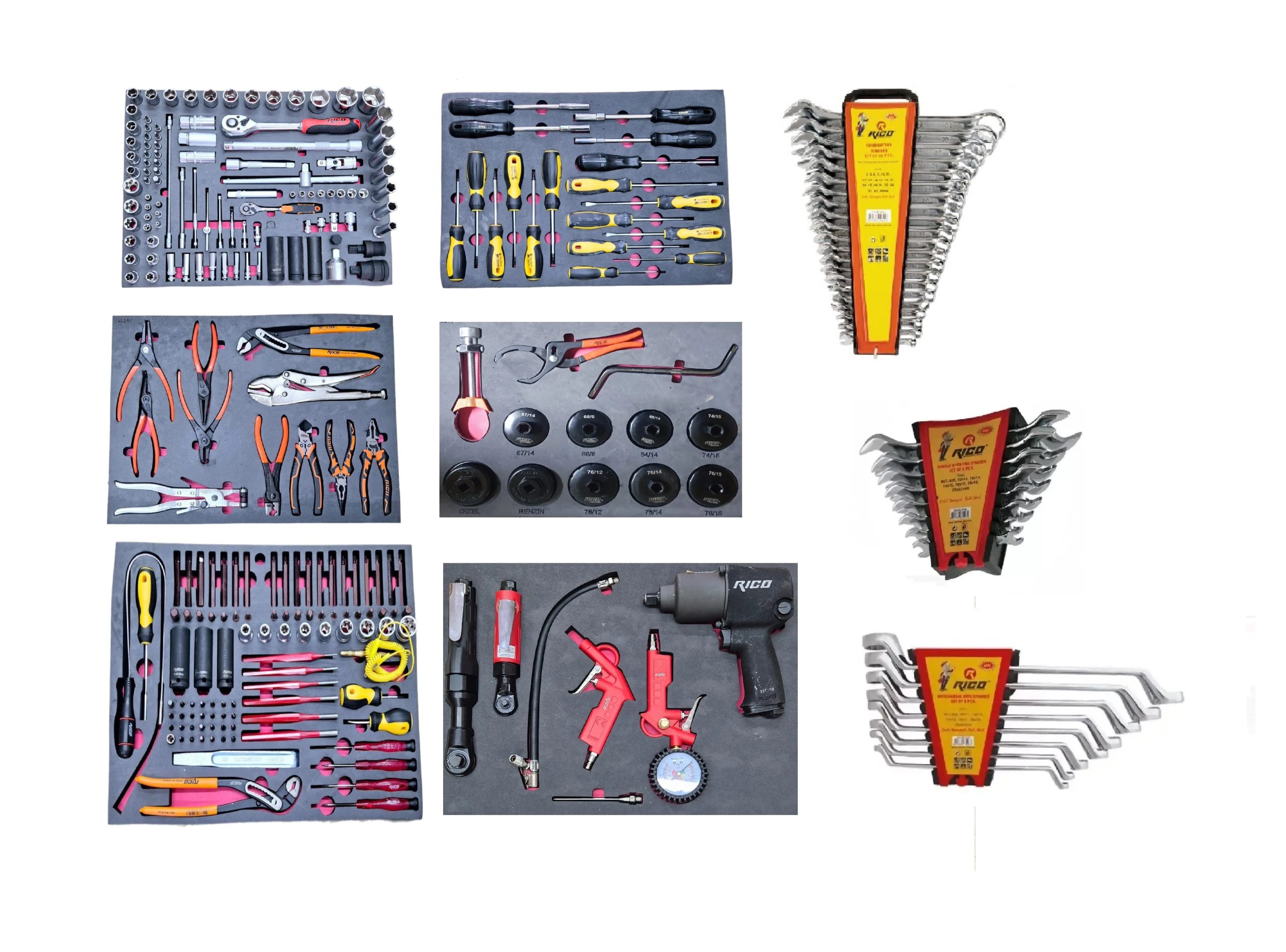 Bir Rico dolu takım arabası içerisindeki tornavida setinin içeriği, takım arabasının modeline ve büyüklüğüne göre değişiklik gösterebilir. Genellikle aşağıdaki gibi bir içerik bulunur: