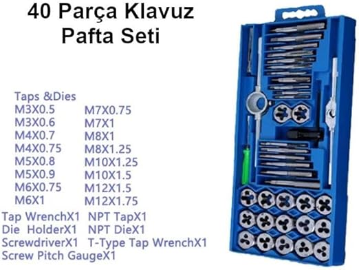 Rico 40 Parça Metrik Kılavuz Ve Pafta Seti Diş Açma Tamir