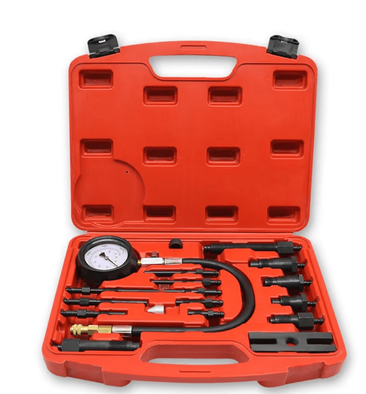 - Ölçüm: Basınç ölçerini hava hortumuna bağlayın ve diğer ucunu uzun kargaburun adaptörüne yerleştirin. Motoru birkaç kez çevirerek basınç değerini okuyun.