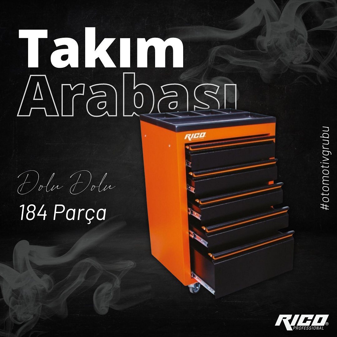 Rico 185 Parça 5 Çekmeceli Dolu Takım Arabası (Genellikle 025-TA0016 model koduyla anılır) profesyonel kullanıma yönelik tasarlanmıştır ve zengin bir alet içeriğine sahiptir.