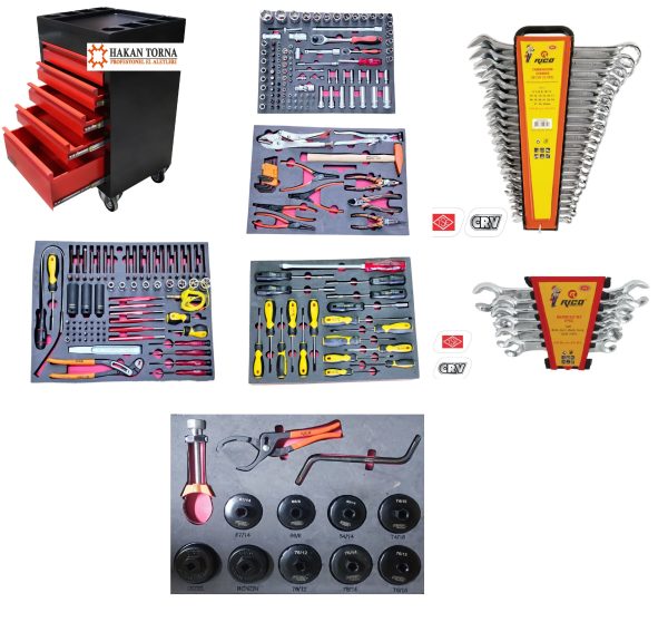 Bir Rico dolu takım arabası içerisindeki tornavida setinin içeriği, takım arabasının modeline ve büyüklüğüne göre değişiklik gösterebilir. Genellikle aşağıdaki gibi bir içerik bulunur: