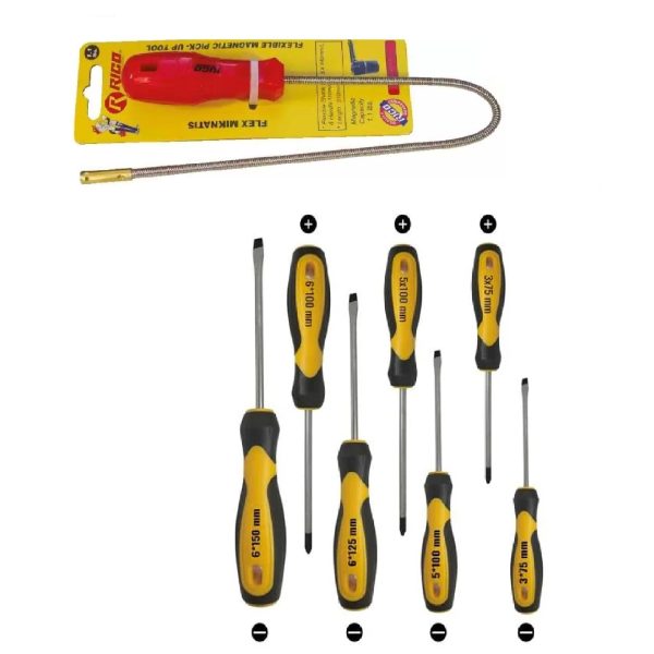 Rico Düz Yıldız Tornavida Seti Takımı Mıknatıslı Vida Tutucu, ev ve atölye ortamlarında küçük tamirat işleri için ideal bir araç setidir. Bu set, hem düz hem de yıldız uçlu tornavidaları ve mıknatıslı bir vida tutucuyu bir arada sunar. Bu sayede tamir işleriniz sırasında vidaların kaybolmasını önleyerek işinizi kolaylaştırır ve hızlandırır.