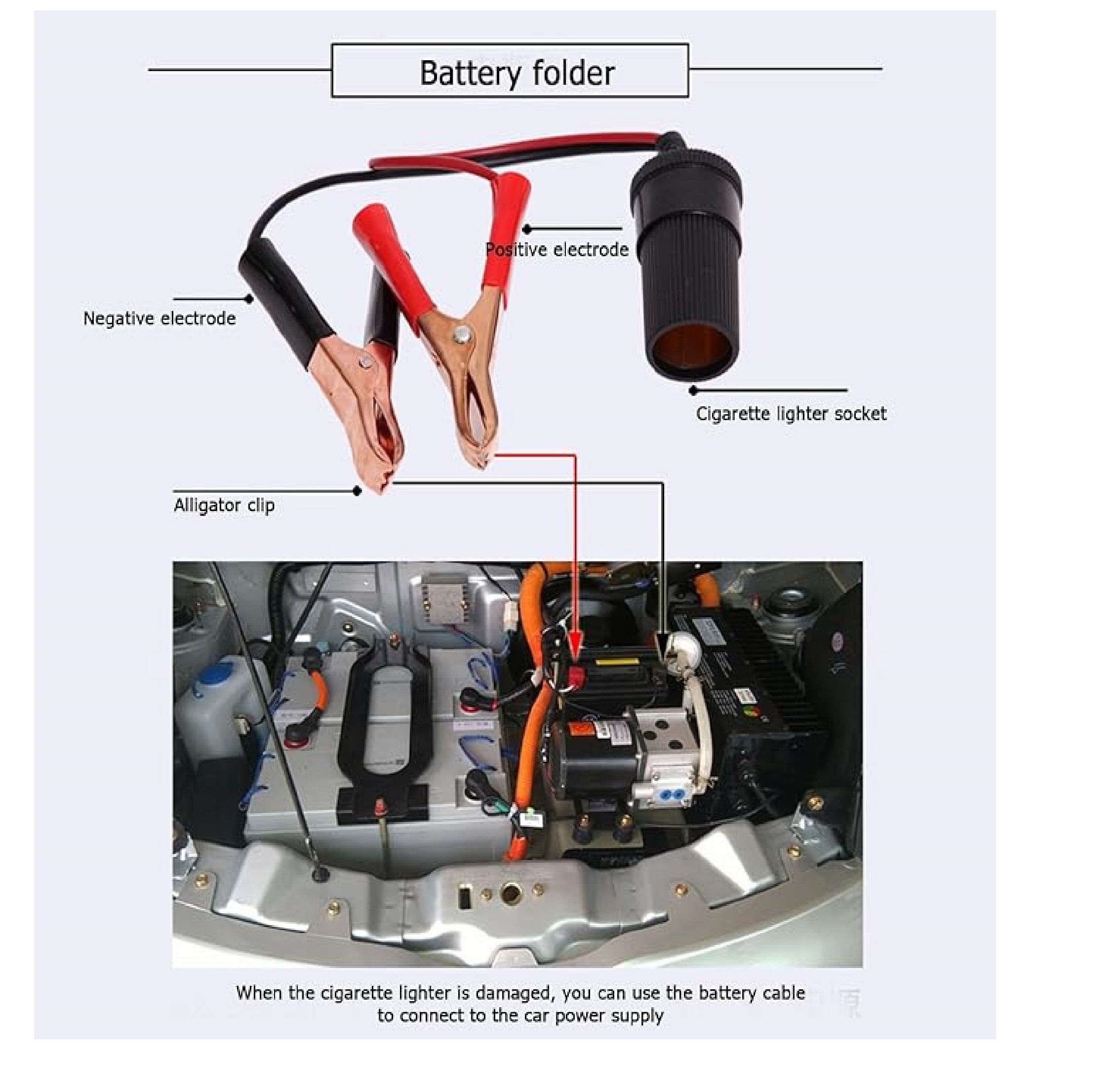 - 12V Güç Kaynağı: Aracınızın aküsünden veya taşınabilir bir bataryadan çalışır.