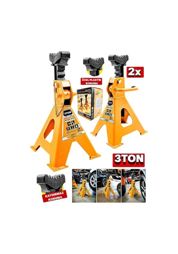 Marka ONON 3 Ton 4 Ayaklı Araba Kriko Standı 2 Adet Set Sehpa Kriko