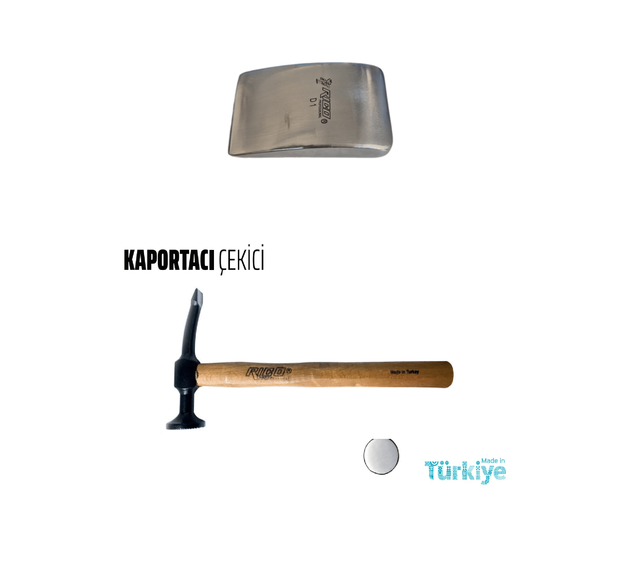 Rico kaporta çekicileri, farklı şekil ve boyutlardaki çekiç başlıkları sayesinde, hasarlı bölgeye uygun çekme gücü uygulayarak, metal yüzeyleri orijinal şekline getirmek için kullanılır.