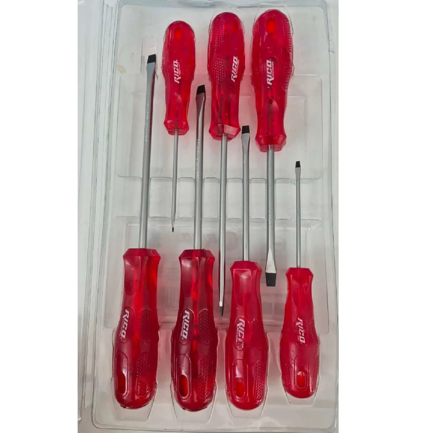 Rico 7 Parça Komple Düz Tornavida Takımı Seti, evde, atölyede veya küçük tamir işlerinde sıklıkla kullanılan temel bir araç setidir. Set içerisinde farklı boyutlarda düz uçlu tornavidalar bulunur. Bu setler, elektronik cihazların tamiri, mobilya montajı, gözlük tamiri gibi birçok farklı alanda kullanılabilir.