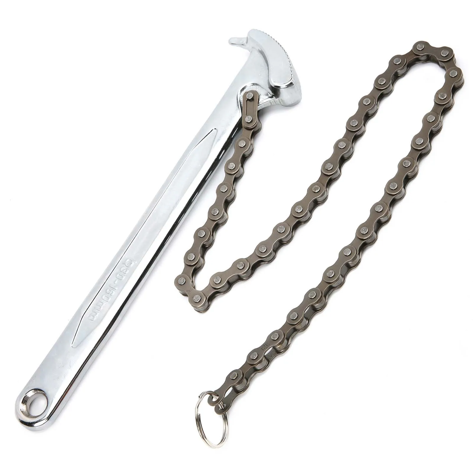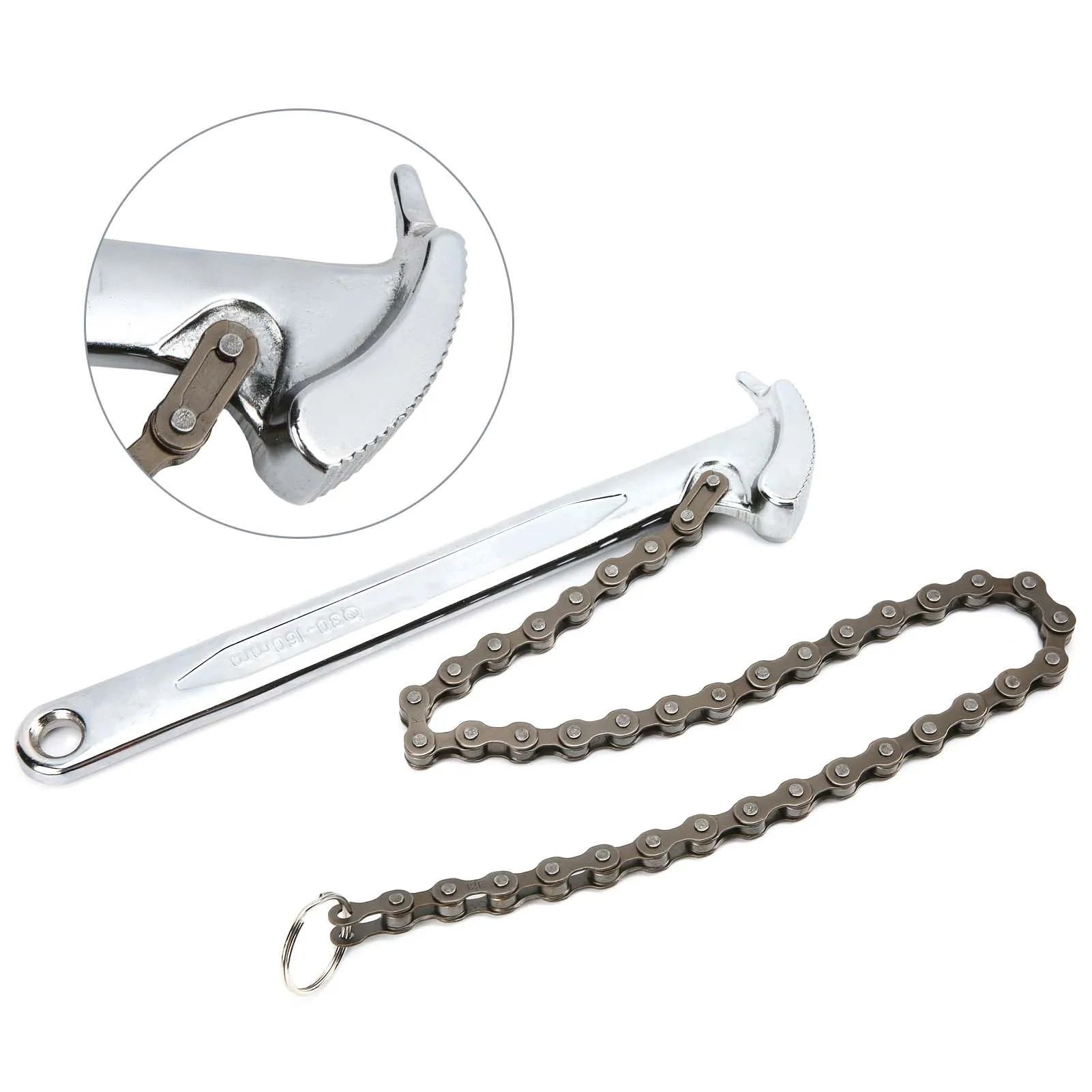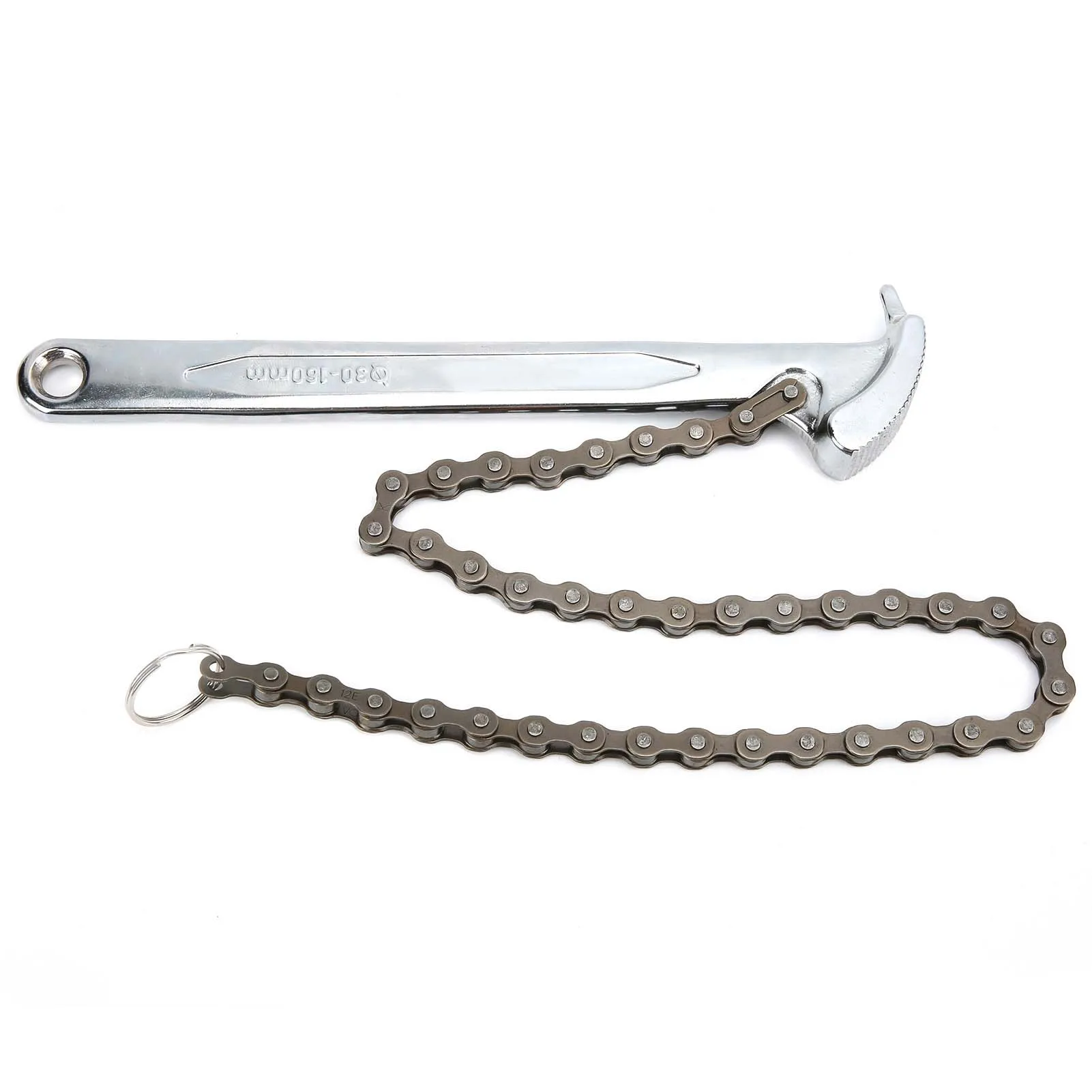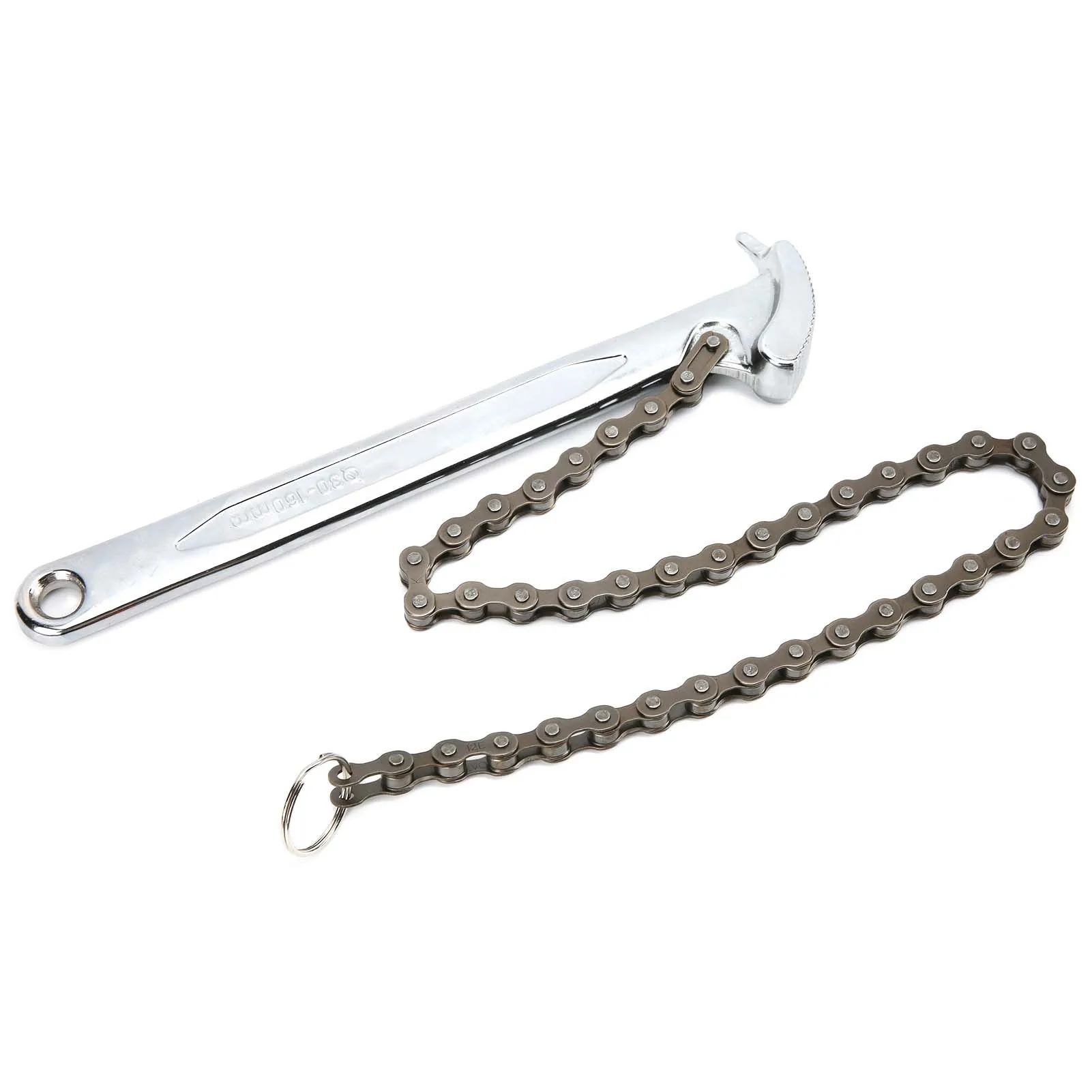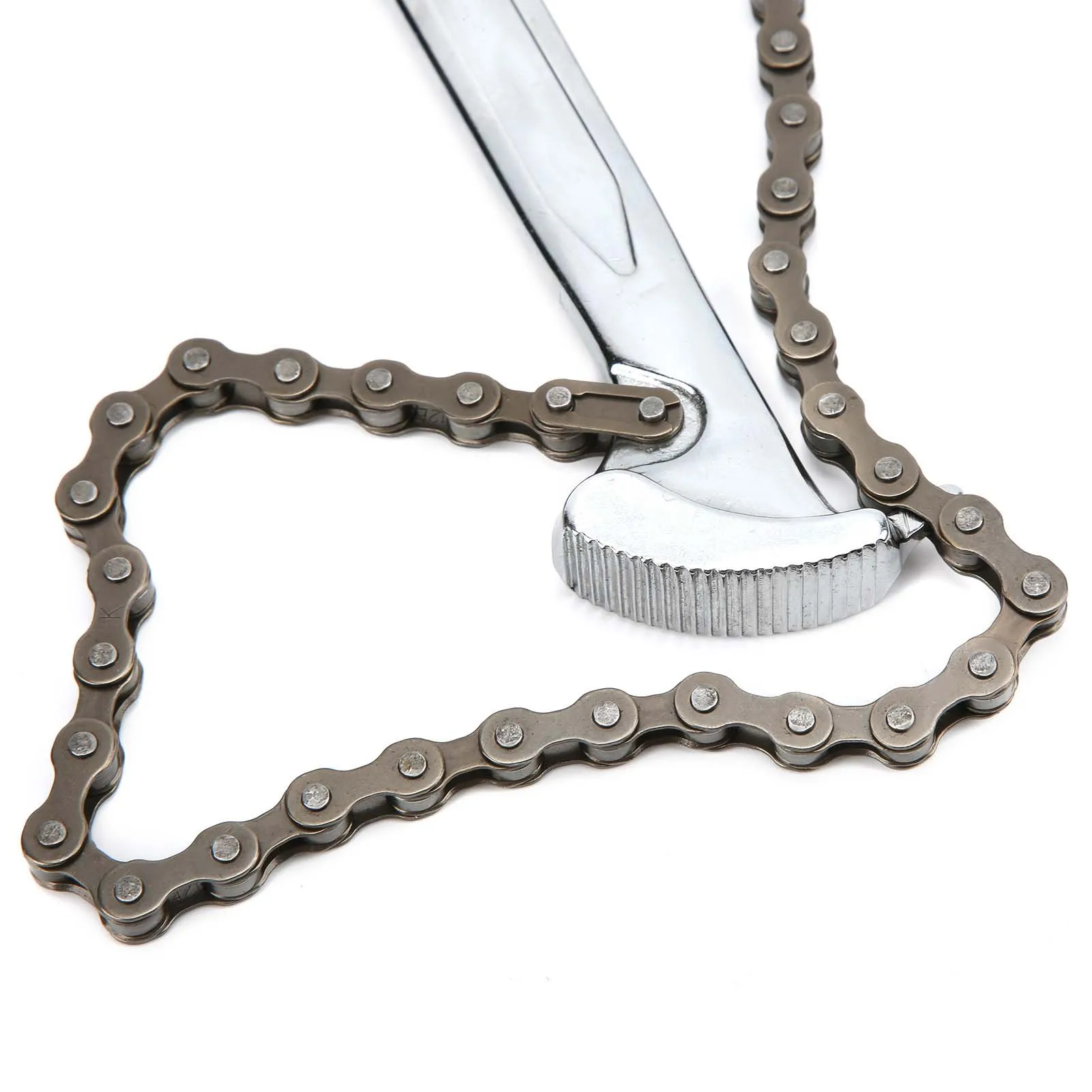 013-KK1104 Zincirli Filtre Anahtarı 9″, otomobillerde, kamyonlarda ve diğer araçlarda yağ filtrelerini ve diğer silindirik filtreleri sökmek ve takmak için tasarlanmış bir alettir. Zincirli tasarımı sayesinde filtrelere sıkıca kavranmasını ve kolayca sökülmesini sağlar.