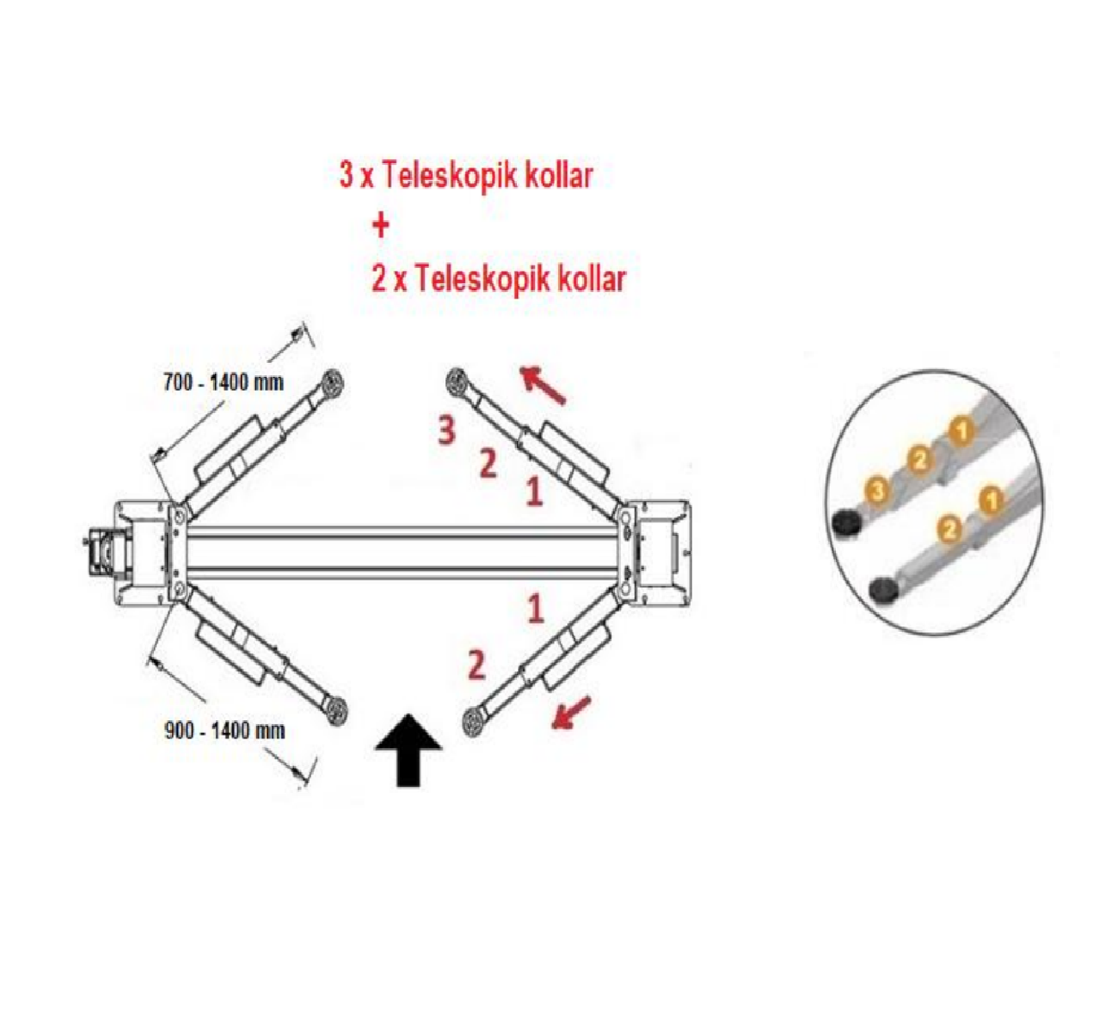 Farklı araç şaselerine uyum sağlayarak dengeli ve güvenli kaldırma sunar.